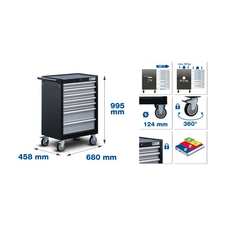 BGS Werkstattwagen 7 Schubladen leer Obere Platte belastbar bis 50 kg