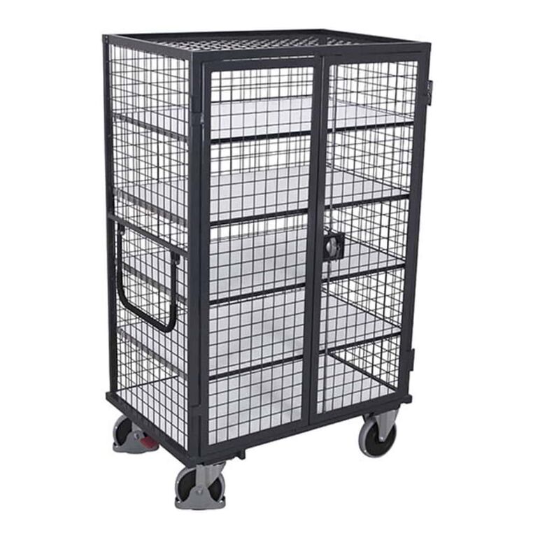 VARIOfit ESD Etagenwagen fest verschweißt Drahtgitterwände Doppelflügeltür