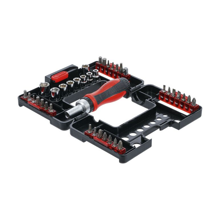 Bit-/Steckschlüssel-Einsatz-Satz mit Ratschen-Drehgriff für Bits, umschaltbar 38-tlg.