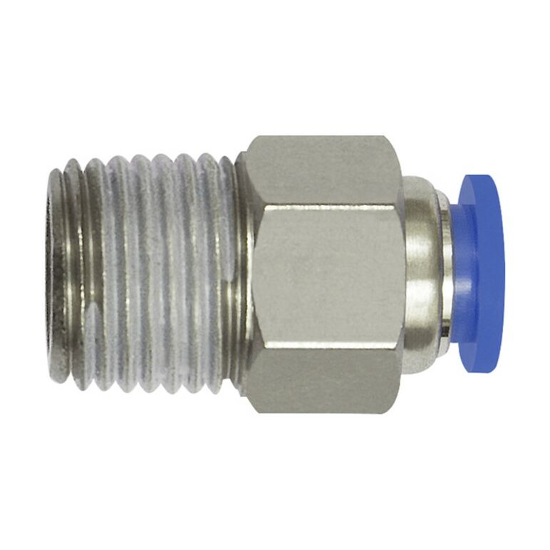 Eigenschaften:Gerade Steckverschraubung »Blaue Serie« mini, R 1/8 a., für Schlauch-Außen-Ø 6 mm, Arbeitsdruck max. 10 bar, Kunststoff/MS vernUnsere Schnellsteckverbinder-Serie aus Kunststoff bzw. vernickeltem Messing in platzsparender Minibaureihe