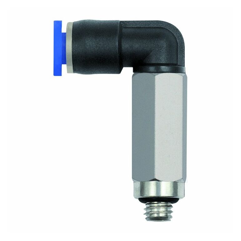 Eigenschaften:L-Steckverschraubung »Blaue Serie« mini, lang, drehbar, M6, für Schl.-Außen-Ø 3 mm, Arbeitsdruck max. 10 bar, Kunststoff/MS vernUnsere Schnellsteckverbinder-Serie aus Kunststoff bzw. vernickeltem Messing in platzsparender Minibaureihe