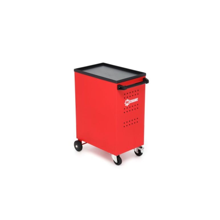 STABIL: Der abschließbare Rollwagen besteht aus einer langlebigen und robusten Stahlblechkonstruktion. Er eignet sich ideal zur flexiblen Arbeit in der Werkstatt.