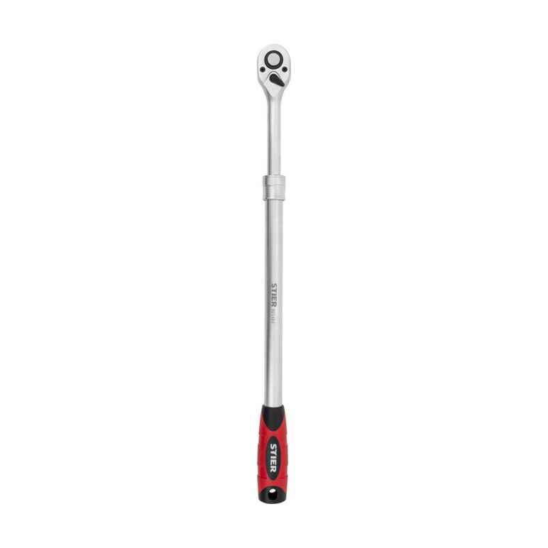 Die STIER Teleskop-Umschaltknarre für zuverlässiges, schnelles und unkompliziertes lösen und festziehen von Schrauben und Muttern.Eigenschaften:Langer Hebelarm für hohes DrehmomentIn 5 Stufen zwischen einer Länge von 450mm und 595mm verstellbarMit praktischer Druckknopfauslösung für schnellen und einfachen WechselMit rutschfestem 2-Komponentengriff für sicheres und angenehmes ArbeitenUmschaltbarAnwendungsgebiete:Für zuverlässiges, festes Anziehen oder zum leichten Lösen von Schrauben und MutternIdeal als Begleiter beim ReifenwechselPassend für einen vielfältigen Einsatz unter anderem in Kfz, Maschinenbau, Montage oder HeimwerkLieferumfang:1 x STIER Teleskop-Umschaltknarre 1/2 Zoll mit SchnellentriegelungSTIER-Produkte werden von Profis aus Handwerk und Industrie entwickelt und verbinden in höchstem Maße Leistungsstärke und Ergonomie. Kraftvoll. Widerstandsfähig. Langlebig.Tausende Kunden vertrauen dem besten Preis-Leistungs-Verhältnis. Erlebe auch du die STIER Produktpalette auf unserer Markenseite.