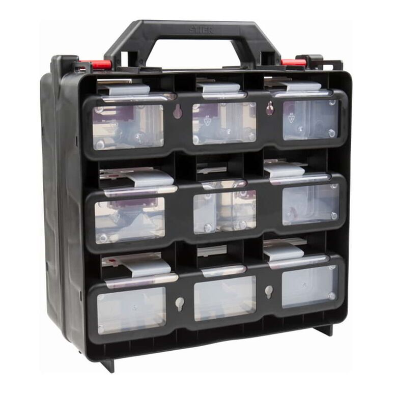 EigenschaftenPraktischer Transportkoffer für eine Vielzahl von Kleinteilen: z.B. Schrauben, Kabelbinder, Muttern (o.ä.)Mit zwölf unterschiedlich dimensionierten, ausziehbaren und transparenten BehälternEinfaches Öffnen und Verschließen der Behälter dank praktischer DrucktasteClip an Werkzeugbehältern ermöglicht Befestigung u.a. am Gürtel für hohe Flexibilität bei der ArbeitLieferumfang1 Hauptbehälter (L x B x H): 300 x 145 x 330 mm12 ausziehbare Behälter:6 Klein (L x B x H): 94,60 x 66,60 x 59 mm4 Mittel (L x B x H): 142,60 x 66,60 x 59 mm2 Gross (L x B x H): 292 x 42 x 59 mmSTIER-Produkte werden von Profis aus Handwerk und Industrie entwickelt und verbinden in höchstem Maße Leistungsstärke und Ergonomie. Kraftvoll. Widerstandsfähig. Langlebig.Tausende Kunden vertrauen dem besten Preis-Leistungs-Verhältnis. Erlebe auch du die STIER Produktpalette auf unserer Markenseite.