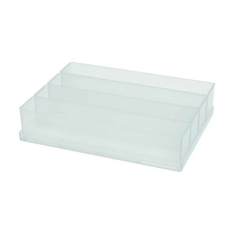 Eigenschaften:Raaco Einsätze, ein Universum an Möglichkeiten: 4 A9-4 Einsätze als Set (auf praktischem Tablar) für die Aufteilung der Sortimentskoffer Boxxser 55, Assorter 55, CarryLite 55, CL-Transporter 55, Compact-Werkzeugkoffer, ToolCase und der Schublade 250-3Mit den Einsätzen von raaco können Sie verschiedene Aufbewahrungssysteme für Ihre Kleinteile einrichten - einfach, schnell und effektivGanz gleich, ob Sie Koffer, Kästen, Werkzeugträger, Schubfächer oder etwas ganz anderes nutzen - mit den praktischen Einsätzen schaffen Sie Ordnung und ÜbersichtDie Einsätze gibt es in vielen Formaten und drei unterschiedlichen Höhen, die miteinander kombiniert und je nach Bedarf ausgetauscht werden können. So richten Sie sich komplette Ordnungssysteme ein, die genau auf Ihre spezifischen Aufgaben abgestimmt sindDie Einsätze sind äußerst robust und widerstandsfähig gegen viele ChemikalienDer transparente Qualitätskunststoff macht den Inhalt leicht identifizierbar und bietet sofort guten ÜberblickDie zweckmäßigen Einsätze sind auf praktischen Tablaren erhältlichDie Tablare haben auf dem Boden ein Rasterkreuz, das die Einsätze an ihrem Platz hält, wenn Sie mögen, sogar in einer Schublade