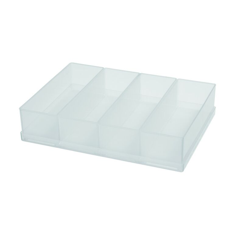 Eigenschaften:Raaco Einsätze, ein Universum an Möglichkeiten: 4 A8-2 Einsätze als Set (auf praktischem Tablar) für die Aufteilung der Sortimentskoffer Boxxser 55, Assorter 55, CarryLite 55, CL-Transporter, Compact-Werkzeugkoffer, ToolCase und der Schublade 250-3Mit den Einsätzen von raaco können Sie verschiedene Aufbewahrungssysteme für Ihre Kleinteile einrichten - einfach, schnell und effektivGanz gleich, ob Sie Koffer, Kästen, Werkzeugträger, Schubfächer oder etwas ganz anderes nutzen - mit den praktischen Einsätzen schaffen Sie Ordnung und ÜbersichtDie Einsätze gibt es in vielen Formaten und drei unterschiedlichen Höhen, die miteinander kombiniert und je nach Bedarf ausgetauscht werden können. So richten Sie sich komplette Ordnungssysteme ein, die genau auf Ihre spezifischen Aufgaben abgestimmt sindDie Einsätze sind äußerst robust und widerstandsfähig gegen viele ChemikalienDer transparente Qualitätskunststoff macht den Inhalt leicht identifizierbar und bietet sofort guten ÜberblickDie zweckmäßigen Einsätze sind auf praktischen Tablaren erhältlichDie Tablare haben auf dem Boden ein Rasterkreuz, das die Einsätze an ihrem Platz hält, wenn Sie mögen, sogar in einer Schublade