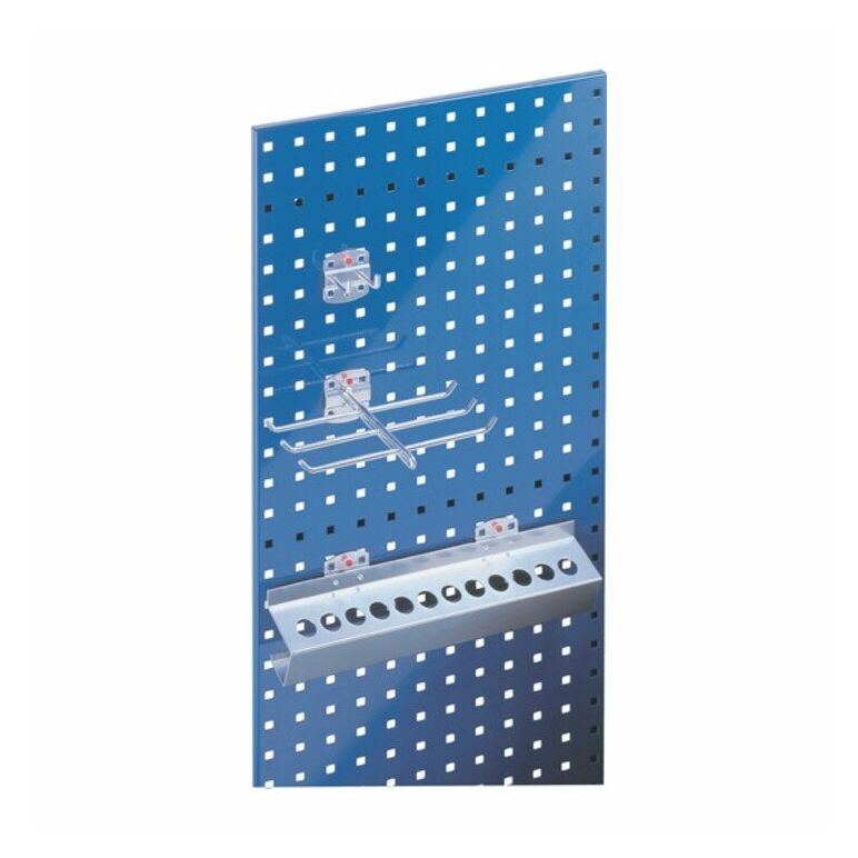 flexibel und ausbaufähig · ideal zur Befestigung an Wänden, Werkbänken oder einsetzbar als freistehende Trennwände (auf Anfrage lieferbar) · Lochplatten aus 1,25 mm starkem Stahlblech · pulverbeschichtet · rundum abgekantet und mittels Unterzüge verstärkt · Lochabstand 38 mm · Lochgröße 10 mm² Weitere technische Eigenschaften: · Lochabstand: 38mm · Plattenstärke: 1,25mm