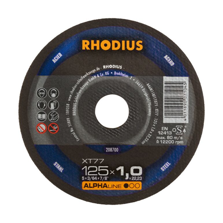 RHODIUS ALPHAline XT77 Extradünne Trennscheibe 125 x 1,0 x 22,23 mm