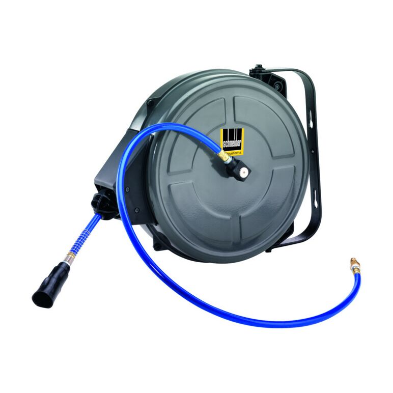 Schneider airsystems Druckluft Schlauchtrommel SLA 8-9, ausziehbare Länge: 9m, Schnellkupplung und Stecknippel, schwenkbar