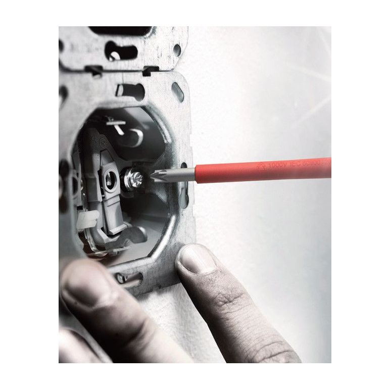 Wechselklinge mit reduziertem Klingendurchmesser mit integrierter Schutzisolation, so können tiefliegende Schraub- und Federelemente erreicht und betätigt werden. Stückgeprüfte Werkzeuge gem. IEC 60900. Stückprüfung bei 10.000 V für sicheres Arbeiten bei der zugelassenen Spannung von 1.000 V. Die Wera Black Point-Spitze bietet Passgenauigkeit und optimierten Korrosionsschutz.