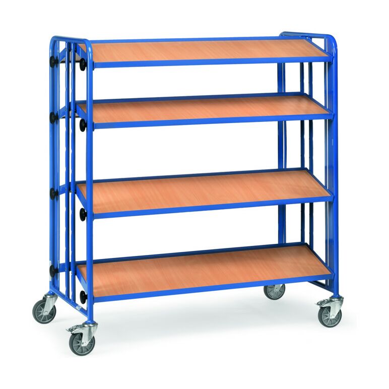4 zweiteilige Etagen mit Holzwerkstoffplatten, Oberfläche Buchendekor, Rand 12 mm hoch