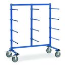 Pulverbeschichtet blau RAL 5007. 2 Lenk- und 2 Bockrollen, TPE-Bereifung, Naben mit Rillenkugellager