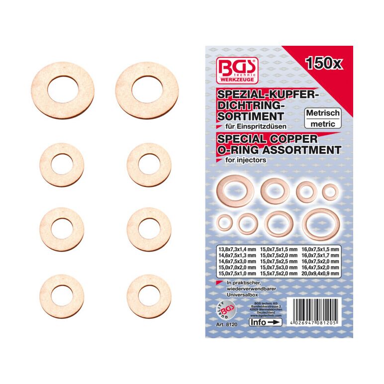 BGS Einspritzdüsen-Kupferring-Sortiment 150-tlg.