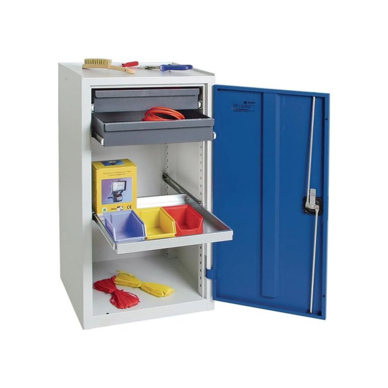 Werkzeug- und Materialschrank Serie 3000, 7035/5010, 2 Schubladen 100 mm, 1 Wannenboden