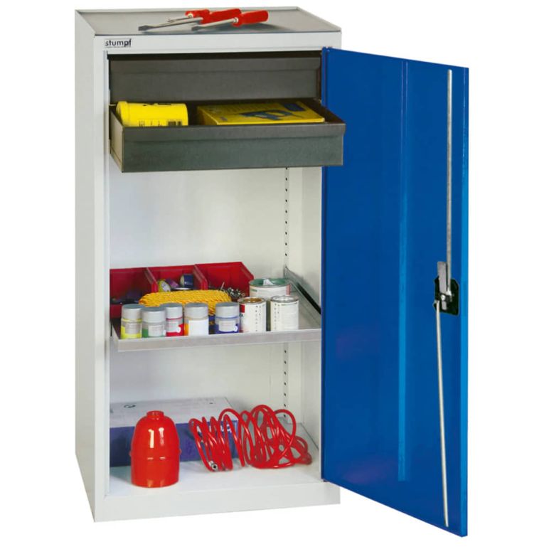 Werkzeug-/Beistellschrank H1000xB500xT500mm 2Schubladen,1 BD grau/blau STUMPF