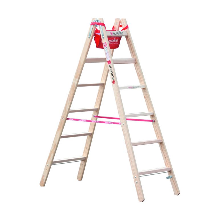 Euroline Holz Sprossenstehleiter mit Comfort-Breitsprossen und Eimerhaken 2x4 Sprossen