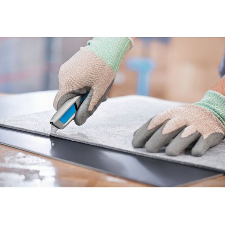 Das SECUNORM PROFI setzte vor über 40 Jahren Maßstäbe in Sachen Sicherheit, Robustheit und Ergonomie. Sein Nachfolger setzt noch einen obendrauf. So steht der neu designte Aluminiumgriff für ein deutlich besseres Handling und ein angenehmeres Arbeiten. Man denke nur an den neuen Schieber, den Sie flexibel von beiden Seiten bedienen können. Oder den jetzt spielend leichten Klingenwechsel. Beim Schneiden schützt Sie der bewährte automatische Klingenrückzug vor Schnittverletzungen.