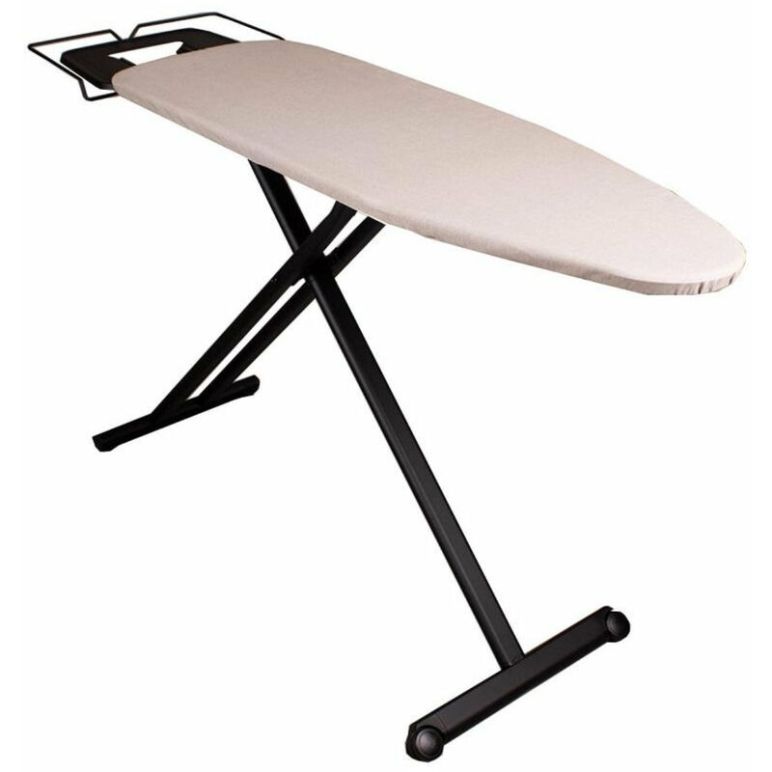 Hergestellt in Europa. Großes ovales Bügelbrett. Größe des großen ergonomischen Bretts: 125x40 cm. Gewicht 6 kg. Verstellbare Höhe bis 92 cm. Sicherheitsverriegelung. Das Brett kann nicht versehentlich zusammenbrechen. sicheres Verschlusssystem. Farbe mattschwarz und grau. Stabiles Bügelbrett aus Aluminium. 3 solide, ergonomisch geformte Beine. Dicke des Stahls: 0,8 mm. Rutschfeste Füße. Langlebige und solide Aluminiumstruktur. Bezug aus 100% Baumwolle, der das Gleiten des Bügeleisens begünstigt und die Haltbarkeit des Bezugs mit 5 mm Schaumstoff für mehr Bügelkomfort. Abnehmbarer, waschbarer Bezug. Ultradicke, komfortable Polsterung für eine glatte Bügelfläche. Ausgestattet mit einer Dampfbügeleisenablage für Rechts- und Linkshänder. Bügeleisenablage, die für die meisten Dampfbügelstationen und klassischen Bügeleisen geeignet ist. hitzebeständig. Professionelles Bügelbrett ausgestattet mit Rollen zur einfachen Aufbewahrung