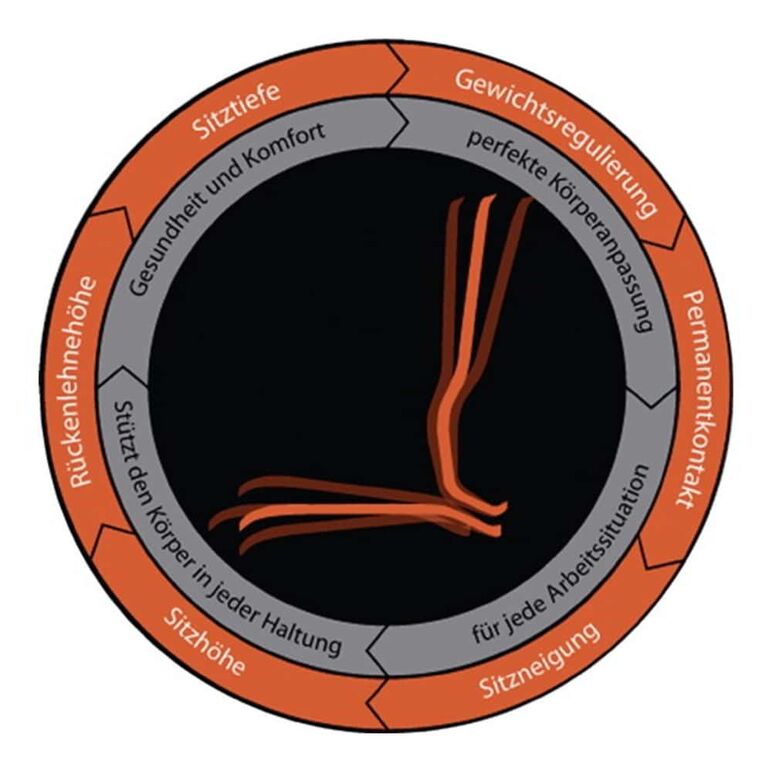 nach DIN 68877 · bedienungsfreundliche Gasfeder-Sitzhöhenverstellung · ergonomisch geformte Sitz- und Rückenpolster aus Gewebe-Supertec, extrem strapazierfähig, widersteht mechanischen Einflüssen · atmungsaktiv, komfortabel, weich und abwaschbar · Permanentkontakt-Rückenlehne · Sitz in Neigung, Höhe und Tiefe verstellbar · höhenverstellbare Rückenlehne · Flexbandfarbe blau · Untergestell mit stabilem Aluminium-Fußkreuz und lastabhängig gebremsten Sicherheits-Doppelrollen für harte Böden Weitere technische Eigenschaften: · Flexbandfarbe: blau