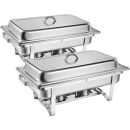 """ZELSIUS Chafing dish Profi Set """"Toulouse"""" Mit diesem Chafing dish Profi Set können Sie dank der hochwertigen Qualität ideal Ihre erwärmten oder kalten Speisen bereithalten. Das Set besteht aus zwei Chafing dishes, gefüllt mit einem 1/1 GN-Behälter, einem 1/2 GN-Behälter und zwei 1/4 GN-Behälter. Im Lieferumfang sind neben den Deckeln auch vier Brennpastenbehälter. Das Chafing dish Profi Set eignet sich hervorragend für Feiern, Feste, Catering, Gastronomie und vieles mehr. Hinweis: Brennpaste ist nicht im Lieferumfang enthalten! Highlights 2x Chafing dish ideal für warme und kalte Speisen Material: Edelstahl Eignet sich hervorragend für Feiern, Feste, Catering, Gastronomie und mehr inkl. 1x GN-Behälter 1/1 (9 L) inkl. 1x GN-Behälter 1/2 (4 L) inkl. 2x GN-Behälter 1/4 (1,8 L) inkl. 2x Gestelle und 2x Deckel inkl. 2x Wasserbecken inkl. 4x Brennpastenbehälter inkl. 1x Haltestrebe Markenprodukt von Zelsius Details inkl. 1x 1/2 GN-Behälter und 2x 1/4 GN-Behälter inkl. 1x 1/1 GN-Behälter"""