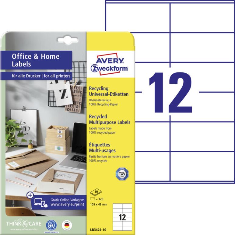 120 AVERY Zweckform Etiketten LR3424-10 weiß 105,0 x 48,0 mm