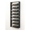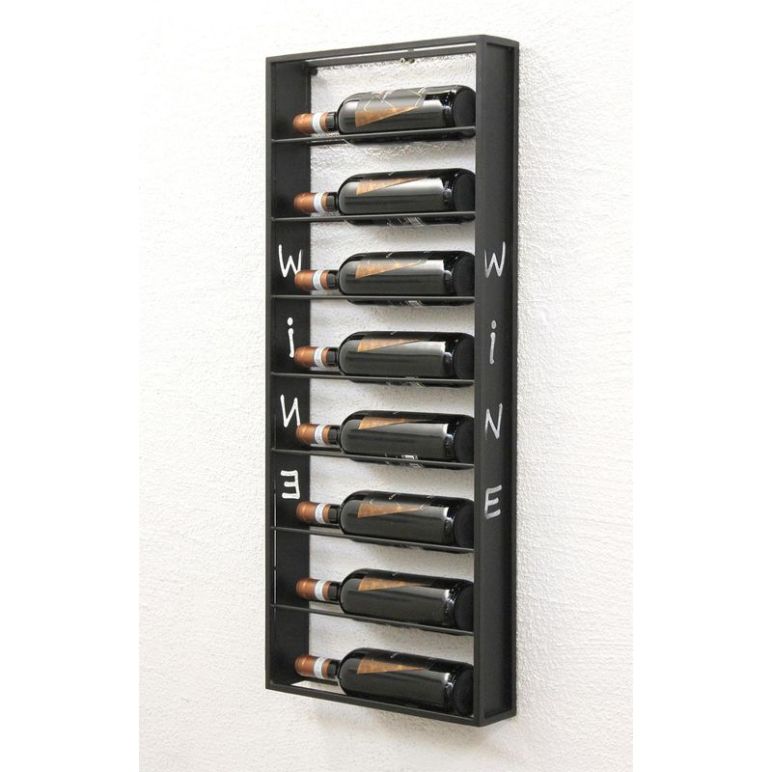 Hochwertiges Design Weinregal für die Wandmontage „Sofie“ mit Platz für 8 Flaschen. Aus Metall geschmiedet und pulverbeschichtet in der Farbe Schwarz.Mit ausgestanztem Schriftzug „Wine“ an den Seiten. Die Flaschen können einfach in die dafür vorgesehenen Ablagen eingelegt werden, durch die waagerechte Lagerung wird das Austrocknen des Korkens verhindert und somit das Eindringen von Luft. Das Flaschenregal wird bereits fertig montiert geliefert, Sie können das Weinfass somit sofort aus der Verpackung entnehmen und an Ihrem Lieblingsort befestigen. Maße: Höhe 88 cm, Breite 37 cm, Tiefe 8 cm. Der Innenabstand der Flaschenablagen beträgt 6,0 cm. Gewicht: 3,5 kg Der Flaschenhalter wird inkl. Befestigungsmaterial geliefert. Der sichere Halt an der Wand erfolgt jeweils mit den mitgelieferten vier schwarzen Schrauben an der Ober- und Unterseite.