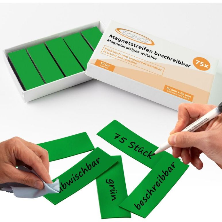 Ecence - 75 Magnetstreifen beschreibbar Etiketten Magnete Schilder Grün