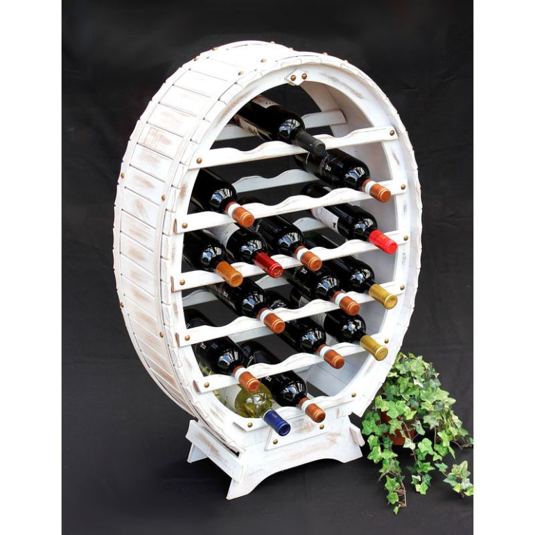 Weinregal Weiss Weinfass aus Holz für 24 Flaschen Vintage Shabby Chic Landhaus Bar Flaschenständer stehend Weinständer Fass - Dandibo