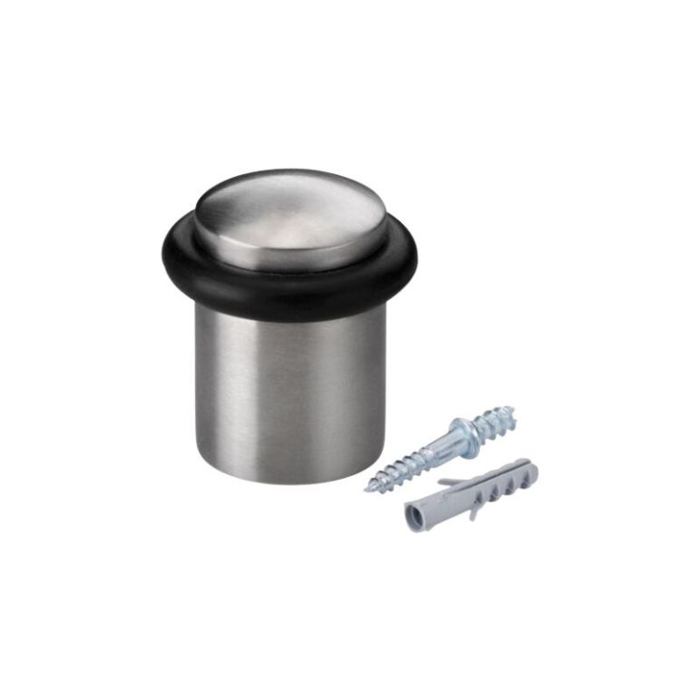 - Farben: Edelstahl - Form: rund - Befestigung: Schrauben - Gummidichtung - Durchmesser: 3 cm - Höhe des Türanschlags: 2.7 cm - Gesamthöhe des Knöchels: 3,6 cm, davon 1 cm über dem Boden - Dübel und Befestigungsschrauben im Lieferumfang enthalten