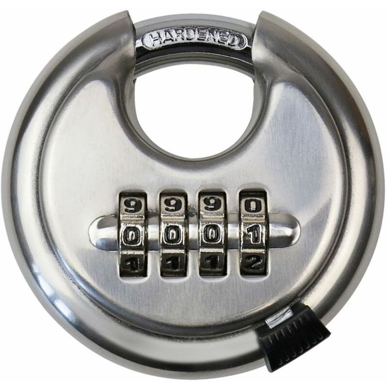 Das individuell einstellbare Vorhängeschloss von HMF mit 4 stelliger Zahlenkombination ist ideal als praktischer Verschluss von Eingängen, Scheunen, Containern, Garagen, Rollgittern und mehr. individuell einstellbares 4er Zahlenkombinationsschloss, dadurch ideal wenn mehrere Personen Zugriff erhalten sollen geschützter Bügel aus gehärtetem Stahl, dadurch hoher Aufbruchschutz durch Brechstangen und Metallsägen Material: Hergestellt aus speziell gehärtetem, robustem und korrosionsbeständigem Edelstahl witterungsbeständig, geeignet für den Außenbereich Korrosionsbeständig Mühelos zurücksetzbare, vierstellige Ziffernkombination mit 10.000 möglichen Kombinationen Gewicht: 0,235 kg Abmessungen Vorhängeschloss (H x B x T): 7 x 7 x 2,4 cm Durchmesser Bügel: 10 mm