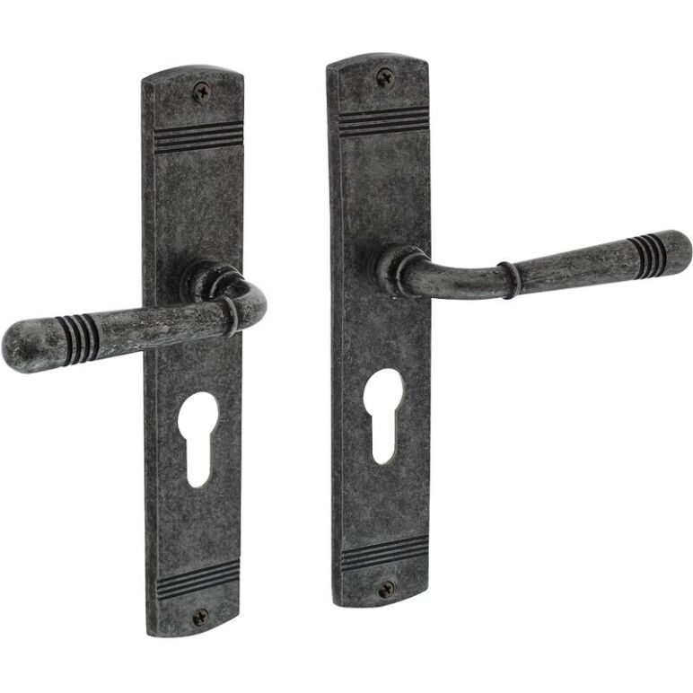 Vintage-Optik Türdrücker Fenstergriff Beschläge Antik Grau Langschildgarnitur Profilzylinder