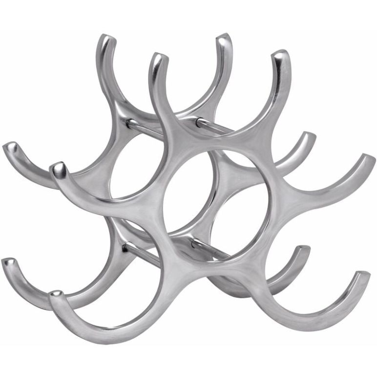 Design Weinregal in extravagentem Design Kombiniert Eleganz mit Funktionalität Abmessungen Höhe: 24 cm Breite: 29 cm Tiefe: 14 cm Durchmesser für Flaschen: 10cm Besonderheiten Für 6 Flaschen Farbe Weinregal: Silber Material Weinregal: Aluminium Lieferumfang 1 Weinregal Lieferung ohne Dekoration