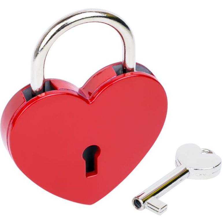 Dekoratives Vorhängeschloss in Herzform von HMF mit Schlüssel. Kleines wunderschönes Bügelschloss in Herzform aus rotem Metall Vielseitig einsetzbar als Verschluss am Tagebuch, für Geschenkboxen und Schmuckkästchen Ideal als Dekorationsartikel für HMF Schatztruhen Schutz vor direktem Zugriff Inkl. 1 Schlüssel Abmessungen: Schloss (H x B x T): 5,9 x 5 x 0,8 cm Bügeldurchmesser: 0,35 cm Bügelweite: 2 cm Gewicht: 42 g Lieferumfang: 1 x Vorhängeschloss 1 x Schlüssel Hinweise: Das Schloss dient hauptsächlich zur Zierde und bietet keinen echten Diebstahlschutz.