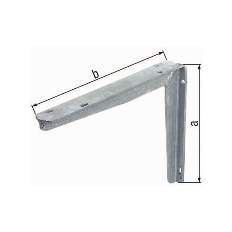 Konsole L.550mm H.300mm STA roh TZN Trgf.110kg GAH T-Profil für extreme Beanspruchung und Belastung · Stahl roh · Oberfläche: feuerverzinkt Weitere technische Eigenschaften: · Oberfläche: feuerverzinkt · Maß a: 300mm · Maß b: 550mm