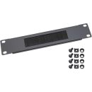 """Die HMF Kabeldurchführung inklusive Bürsteneinsatz bringt Ordnung in Ihren Netzwerkschrank. Zum Schutz und geordneten Durchführung der Patchkabel innerhalb des Serverschranks Ermöglicht ein strukturiertes und sauberes Kabelmanagment Passend für 10"""""""" Serverschränke von HMF und anderen Herstellern Belegt eine Höheneinheit (1 HE) Hergestellt aus stabilem Stahlblech Pulverbeschichtet wahlweise in Schwarz Einfache Installation dank der zwei Befestigungslöcher auf jeder Seite Inkl. Käfigmuttern Lieferumfang: 1 x Kabeldurchführung 4 x M6 Linsenkopfschraube (Kreuzschlitz) 4 x Vierkantmutter 4 x M6 Unterlegscheibe aus Kunststoff Abmessungen (B x H x T): 25,5 x 4,5 x 1,5 cm Gewicht: 128 g Hinweise: Diese Kabeldurchführung kann nur an den 10 Zoll Profilschienen im Inneren des Serverschrankes montiert werden. Das Produkt ist nicht zur Installation an den äußeren Kabelzuführungen des Gehäuse geeignet."""