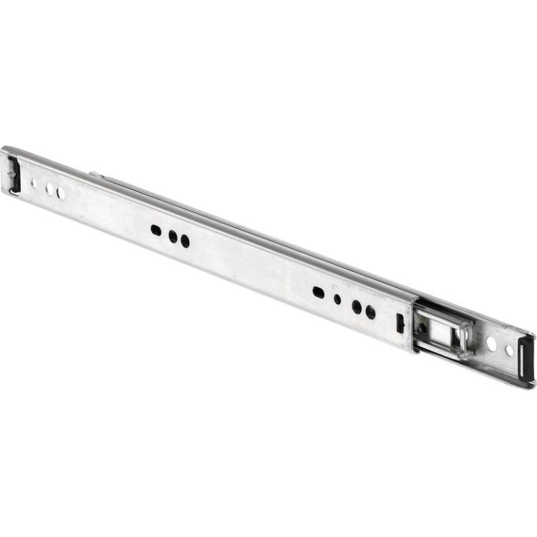 Rastung in geschlossener Position Seitenmontage Schienenstärke 12,7 mm geringe Schienenhöhe 26,3 mm Hinweis: Empfohlene Befestigung: Holzschraube 4 mm/Euro-Schraube 6 mm Kopfhöhe 2mm/ø 7.8 mm Hinweis zur Tragkraft: Es sind alle Befestigungspositionen zu verwenden, damit die maximale Tragkraft erreicht wird. Die Tragkraft bezieht sich auf einen dynamischen Zyklus von 80.000 Wiederholungen. Tragkraft(kg): 30 Type: Accuride 2601 Schienenlänge(mm): 550 Ausführung: Vollauszug Werksnummer: DZ2601-0055 Material: Stahl verzinkt, hell chromatiert Auszugsweg(mm): 554 Marke: Accuride Inhaltsangabe (GT): 1