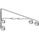 Dekorative Winkel - Konsole Jasmin für leichte Belastung im Landhaus-Stil geeignet für Holzregalböden. Material: Stahl Bodentiefe max.: 400 mm Höhe: 150 mm Tiefe: 350 mm Farbe: Weiß Anwendungsbereiche: Balkon, Wohn- und Esszimmer, Garten, Keller, Terrasse und Garage. Schnelle und einfache Montage - die Regalkonsolen werden mit den passenden Dübeln und Schrauben an die Wand montiert. Maximale Belastung pro Konsole: 8 kg Schaff dir Platz mit den Regalträgern von Element System