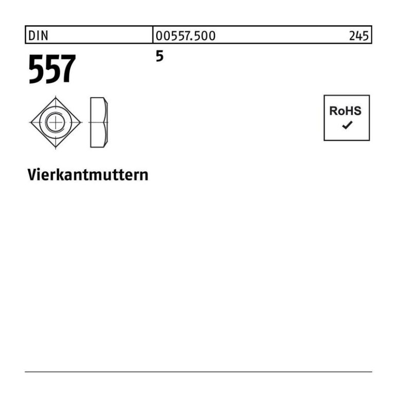 Vierkantmutter DIN 557 M8 5 100 StückDIN 557 5 Vierkantmuttern - Abmessung: M 8 VE=S (100 Stück) Weitere technische Eigenschaften: · Gruppencode: 00557.500