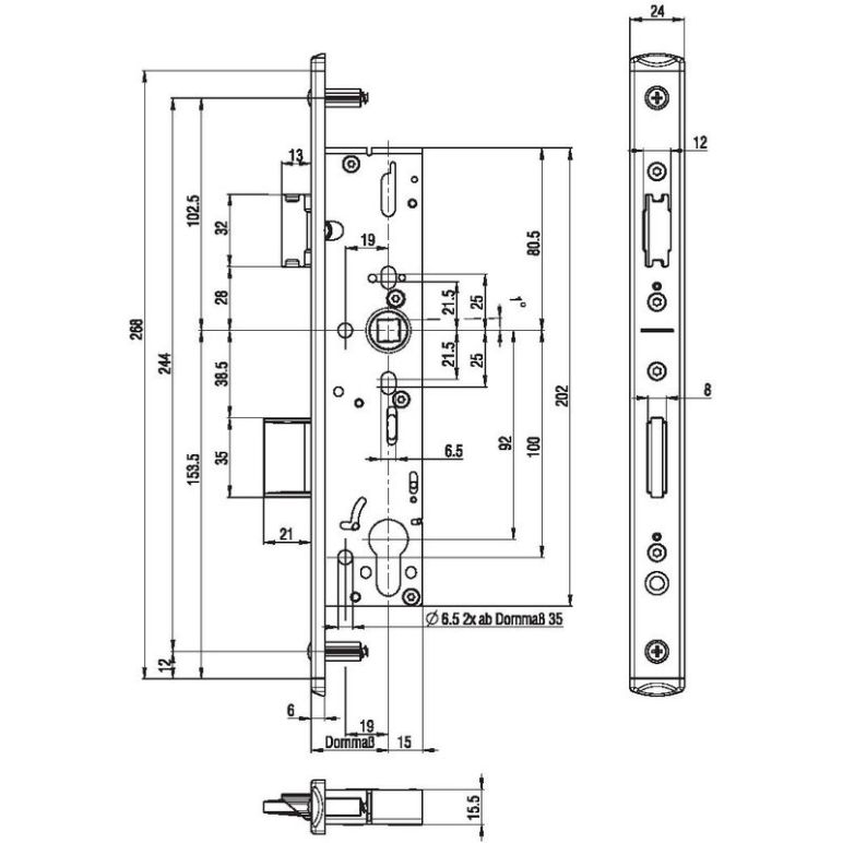BKS RR-Panikschloß 18260, FunktionE, mitWechsel, U-Stulp 24x6x268mm, Dorn 35mm, Entf.92mm, Nuß 9mm, Nr. B-18260-18-U-8