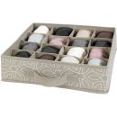Die vielseitige Aufbewahrungsserie Balance bietet zahlreiche Möglichkeiten, Kleidungsstücke und Textilien staubfrei, atmungsaktiv und platzsparend zu verstauen. Die Balance-Serie begeistert mit attraktivem Design sowie einem umfangreichen System an praktischen Aufbewahrungslösungen – für mehr Platz auch auf kleinstem Raum. Alle Artikel der Balance Aufbewahrungs-Serie sind aus atmungsaktivem, strapazierfähigem Vlies-Material gefertigt und optimal für den schonenden Einsatz auf Reisen und zu Hause konzipiert. Der charmante Schubladen-Organizer der Aufbewahrungs-Serie Balance bietet mit 16 separaten Fächern viel zusätzlichen Stauraum und Ordnung. Mit der Aufbewahrungsbox ist eine optimale und übersichtliche Aufbewahrung von Socken, Krawatten, Gürtel, Unterwäsche und vielen anderen Accessoires in der Schublade garantiert. Bei Nichtgebrauch kann der praktische Sortierer platzsparend zusammengefaltet und verstaut werden. Die dekorative Balance-Serie im trendigen Taupe mit zartem Muster