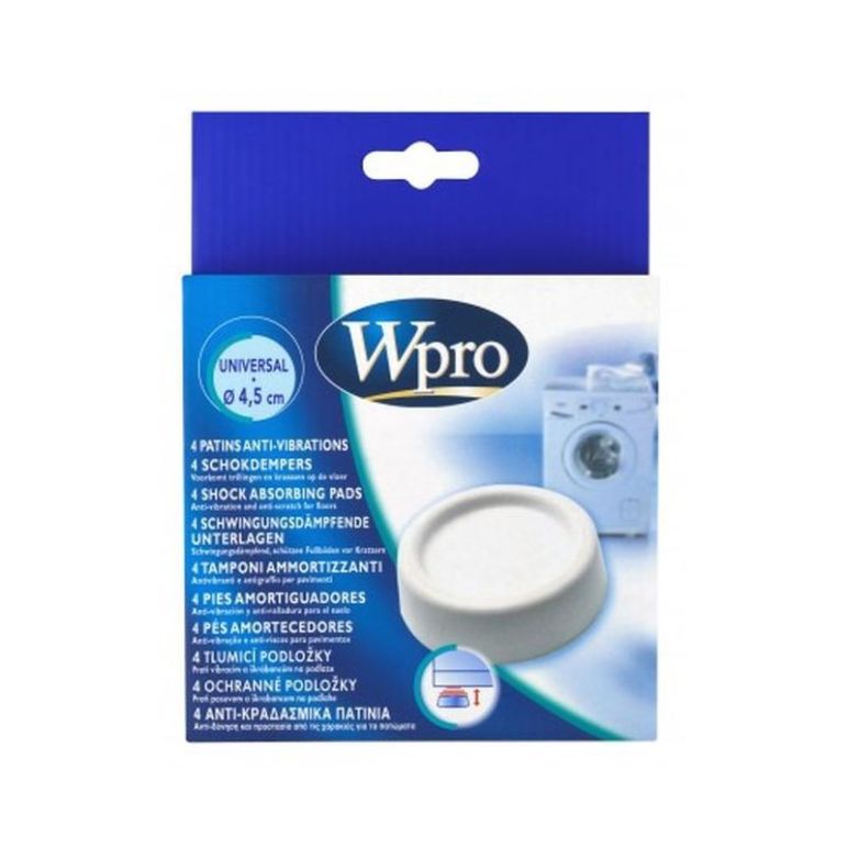 Wpro universelle Schwingungsdämpfende Unterlagen - SKA002 Wenn Ihre Waschmaschine auf Hochtouren läuft, wird sie auch automatisch lauter. Die höheren Schwingungen können sogar empfindliche Böden schädigen. Die schwingungsdämpfenden Unterlagen von Wpro schützen auch fragile Bodenbeläge und dämpfen die Vibrationen der Waschmaschine effizient. Darüber hinaus erhöhen sie die Sicherheit, indem sie das Rutschen auf glatten Böden verhindern. Sehen Sie selbst! Inhalt: 4 Stück, Durchmesser 4,5 cm Produktbeschreibung: Beim Schleudern einer Waschmaschine kann es unter Umständen laut werden oder der Boden kann beschädigt werden. Die Wpro Unterlagen federn die Vibrationen ab, ohne dabei die Stabilität der Maschine zu beeinträchtigen. Schwingungsdämpfende Unterlagen Wenn Ihre Waschmaschine auf Hochtouren läuft, dann wird sie auch lauter. Die höheren Schwingungen können sogar empfindliche Böden schädigen. Gut, dass es die universal einsetzbaren Wpro schwingungsdämpfenden Unterlagen gibt. Denn diese