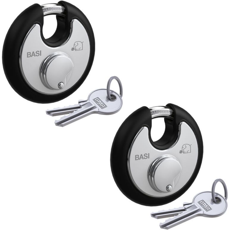 Das Rundbügelschloss der Marke BASI aus hochwertigem Edelstahl bietet höchsten Schutz für Ihr Eigentum. Eignet sich perfekt zum Verschließen von Toren, Anhängern, Auflagenboxen, Kellerräume oder Schränke. Das Vorhangschloss ist mit einem gehärtetem Stahlbügel und Gummiummantelung ausgestattet. Die Ummantelung aus Gummi und die angebrachten Zylinderklappe bieten zusätzlichen Witterungsschutz. Durch die runde Form des Schlosses bietet das Diskusschloss nur wenig Angriffspunkte und mehr Sicherheit. Dank des Korpus aus Edelstahl ist das Schloss zudem rostfrei. Erhältlich in Gleichschließend / Verschiedenschließend – Lieferung inklusive 2 Schlüssel pro Schloss. 24er Set - Rundbügelschloss / Vorhangschloss mit Edelstahlkorpus und Stahlbügel Mit extra Witterungsschutz und Zylinderklappe Die Scheibenform sorgt für zusätzlichen Aufbruchsschutz Zum Verschließen von Kellertüren, Tore, Schuppen, Werkzeugen oder als Anhängerschloss verwendbar Automatisches Schließwerk das beim Herunterdrücken des