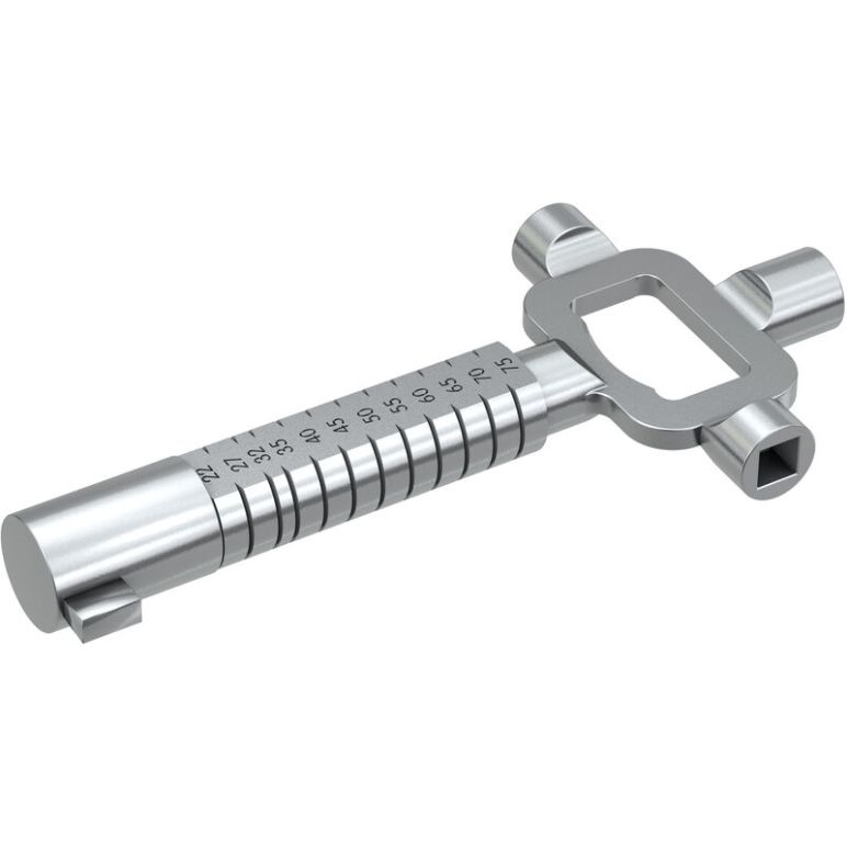 Universal-Steckschlüssel (Architektenschlüssel) von BASI - vielseitig einsetzbar. Für Neubauten, oder als Messschlüssel. Kann zur Bestimmung der Länge des Profilzylinders eingesetzt werden. Mit Türöffnungsfunktion. Dornschlüssel mit Innenvierkant 6, 7, 8 mm. Neubauten- Mess und Steckschlüssel Universalschlüssel auf Zinkgussdruck, vernickelt Mit 3 mm innensechskant-Aufsatz Ideal für unterwegs und auf der Baustelle