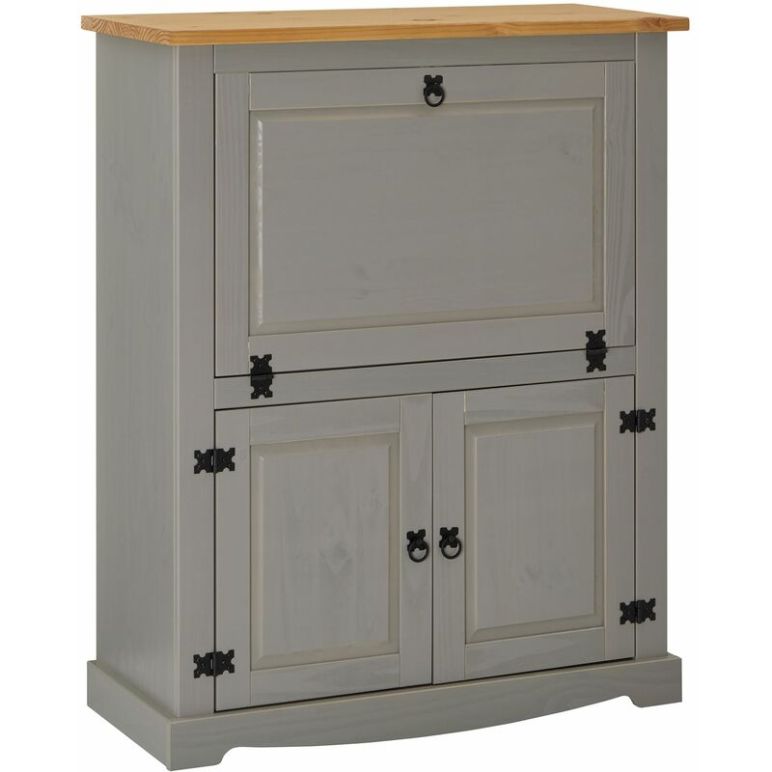 IDIMEX Weinschrank Tequila im Mexiko Stil, schöner Barschrank mit Klappfach und 2 Türen, praktische Hausbar aus Kiefer massiv in grau/braun