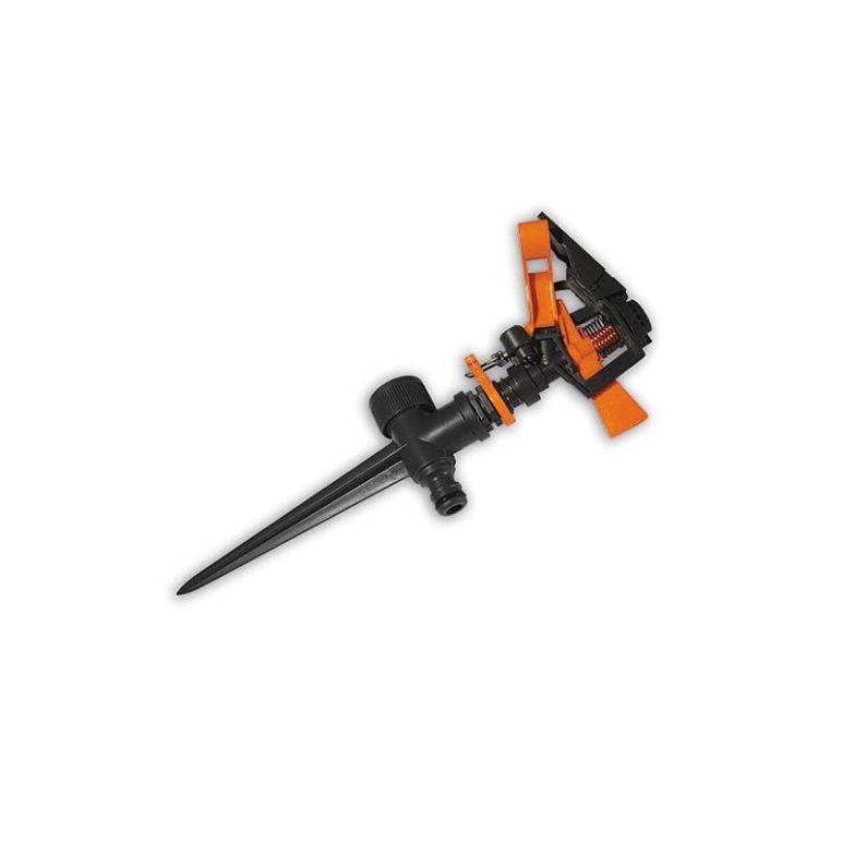 Gold Line pulsierender Sprinkler Pulsierenden Sprinkler aus hochwertigem Kunststoff. Einstellbare Größe und Form (1/4 , 1/2, 3/4 und voller Umkreis)  der zu besprühenden Fläche. Sicherungsscheibe für den ausgewählten Bereich. Spike hat einen Nippel zu den Kupplungen und eine Anschlussverbindung  für eine  serielle Verbindung zu weiteren Sprinkler. Bewässerungsradius: 12m.