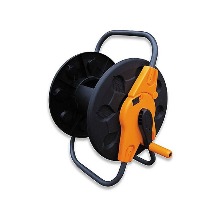 "Transportable Schlauchtrommel aus strapazierfähigen und UV-beständigem Polypropylen. Das Verdrehen und Knicken des Schlauches wird durch den abgewinkelten Schlauchanschluss verhindert. Insgesamt hat die Schlauchtrommel eine Kapazität von 60 Metern Schlauch mit ½ Zoll oder 40 Metern Schlauch mit 5/8 Zoll. rost- und korrosionsresistenter Griff platzsparender, umklappbarerer Griff Innenanschluss und Außenanschluss abgewinkelter Schlauchanschluss verhindert Verdrehen und Knicken des Schlauches Kapazität bis zu 60 m 1/2""- oder 40m 5/8""- Schlauch Farbe: schwarz/orange"
