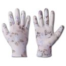 Die Arbeitshandschuhe sind mit einer glatten Oberfläche aus Nitril beschichtet . Die Handschuhe sind aus Polyester-Gewebe mit 13 Stich gefertigt. Die Damen Handschuhe sind gegen Fette, Öle, Kohlenwasserstoffe und Lösungsmittel beständig . Die Damen Handschuhe sind für Garten- und Hausarbeiten bestens geeignet. Beschichtung: Nitril glatte Oberfläche Material: Polyester-Gewebe 13 Stich Fette, Öle, Kohlenwasserstoffe und Lösungsmittel beständig sehr gute Passform Blumenmuster Widerstand: 3 1 2 1 fusselarm Größe: 6-8 Norm: EN420, EN388