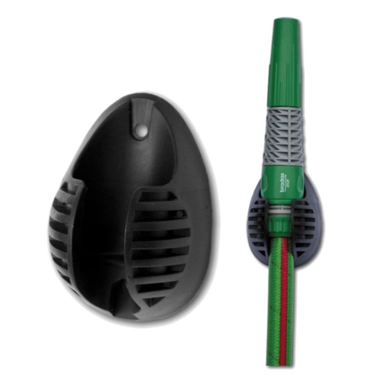 "Aufhänger, zur Halterung von Garten-Accessoires z. B. Spritzbrausen passend für 1/2"" Schläuche einfache Montage Material: Kunststoff Farbe: schwarz Gewicht: 0,01 kg"