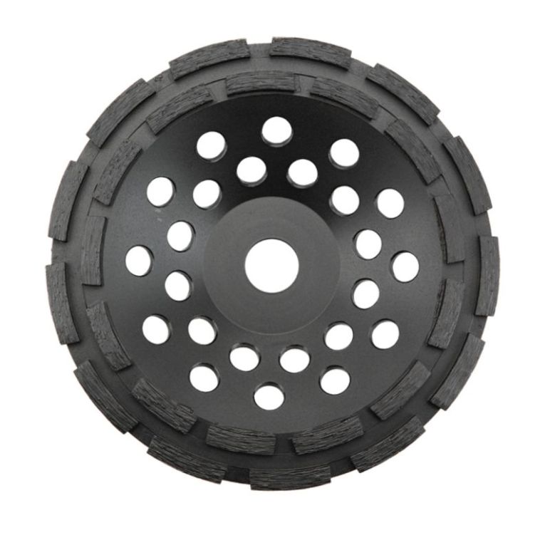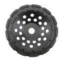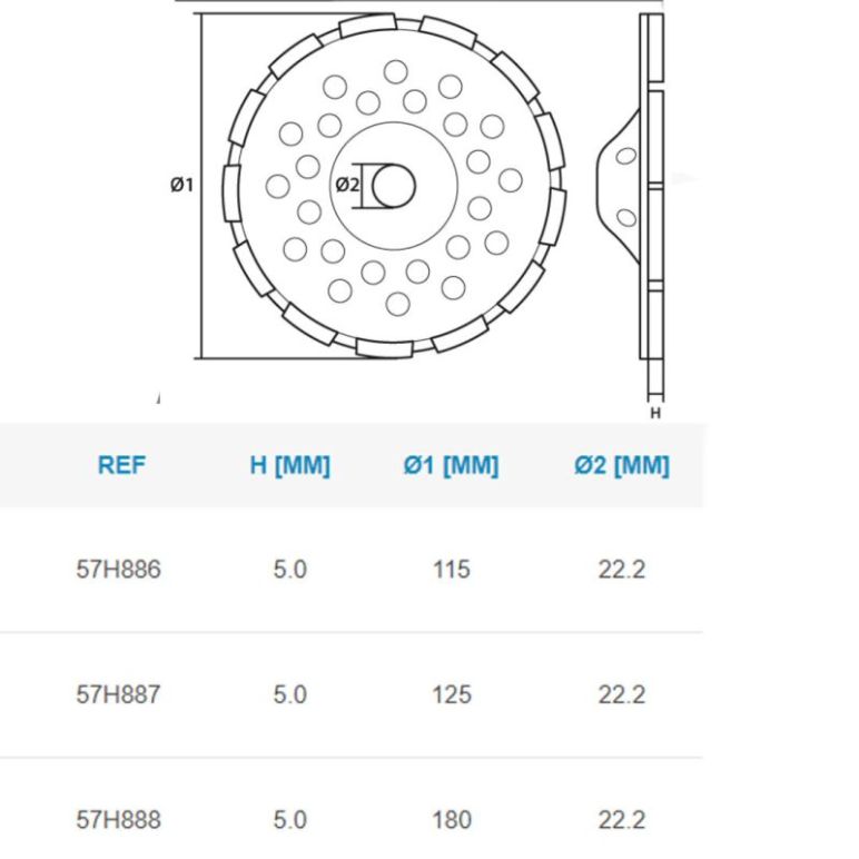 Dieser zweireihige Diamant Schleifteller verfügt über einen segmentierten Schneidrand, dadurch wird ein effizientes und feines Schleifen von mineralischen Oberflächen (Beton, Stein, Granit, Marmor etc.) ermöglicht. Abgerundet wird der Schleiftopf durch die Absaugöffnungen, ein sauberes Arbeiten wird somit gewährleistet. Diamantschleiftopf bestens geeignet für: Trennschleifer, Winkelschleifer große Staubabsauglöcher hochwertiger Diamant Schneidrand Doppelsegment zum Entfernen von Beschichtungen, Putz, Kleberesten, etc. zum Schleifen von Mauerwerk, Stein , Beton, Stahlbeton, Schalungsstößen, Estrich, etc. erzielt sehr gute Schleifergebnisse auf hartem Beton und Estrich, etc. Industriequalität für Nass- und Trockenschnitt Maße: Bohrung: 22,2 mm, Segmenthöhe: 5 mm Größen: 115, 125, 180 mm Farbe: schwarz Größe Anzahl der Zähne 115 mm 18 125 mm 20 180 mm 26
