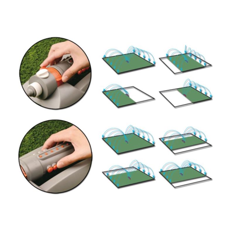 Viereckregner bis 375m² WhiteLine Rasensprenger Viereckregner Sprinkler Regner Bewässerung. Mit diesem Kreisregner treffen Sie garantiert die beste Wahl. Technische Daten standsicher und vielseitig einsetzbar aus Kunststoff gefertigt Sieb, herausnehmbar stufenlos einstellbare Reichweite individuell regulierbare Sprengweite Beregnungsfläche:  bis  zu 375 qm rechtwinklig einstellbar 18 gummierte Düsen, regulierbar gleichmäßige Wasserverteilung ideal für kleine bis mittelgroße Flächen Wasserdruck kann erhöht oder gemindert werden Düsen: nach links/rechts einstellbar Winkel einstellbar Düsen einstellbar (schmaler/breiter)